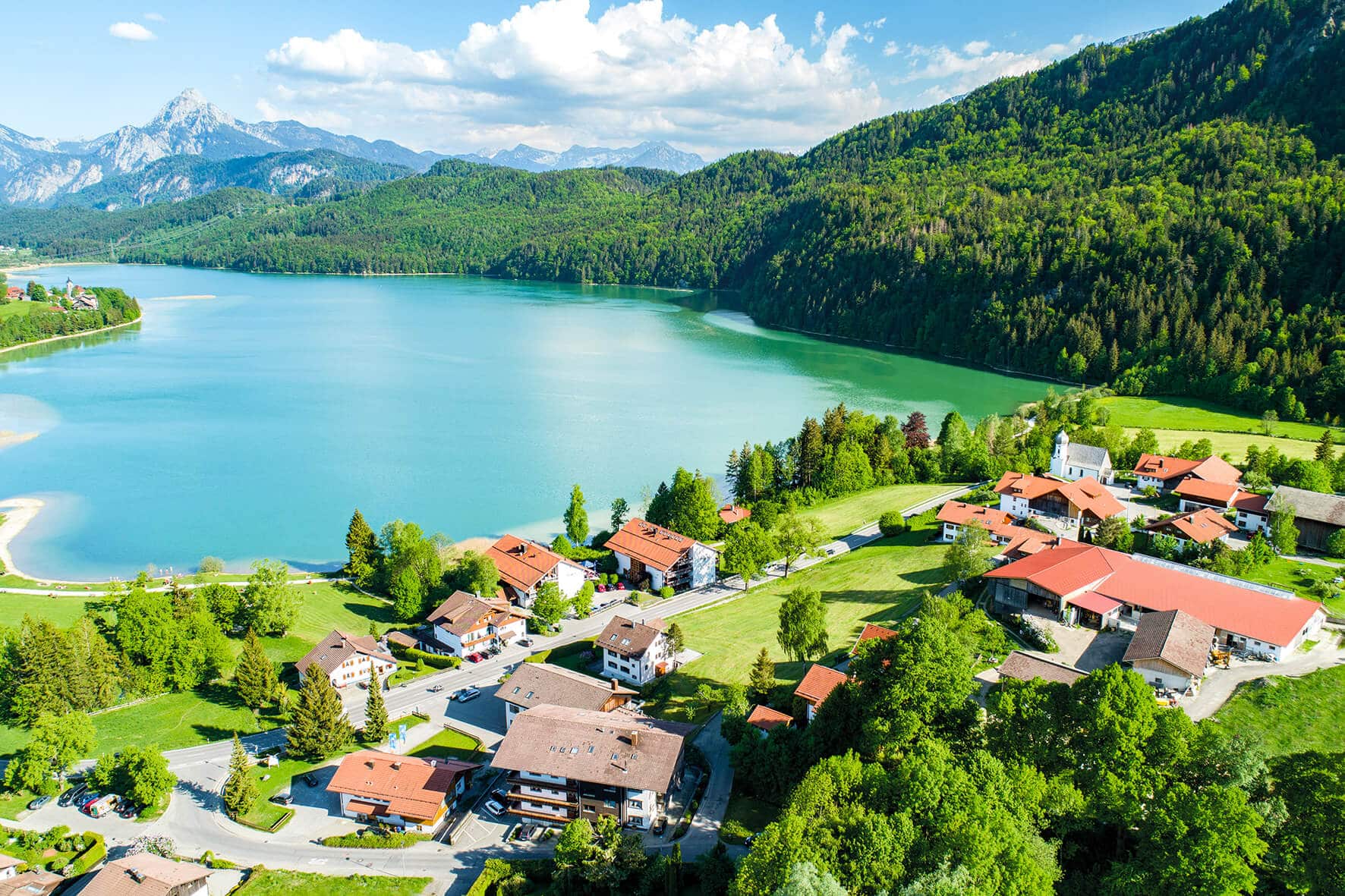 Freuen Sie sich auf Ihren Urlaub bei uns! Sie kommen hier auf eines der schönsten Fleckchen des Ostallgäus: der Füssener Ortsteil Weißensee liegt unmittelbar am gleichnamigen See – die Steigmühle ist nur eine Minute vom Ufer entfernt, am sonnigen Hang.