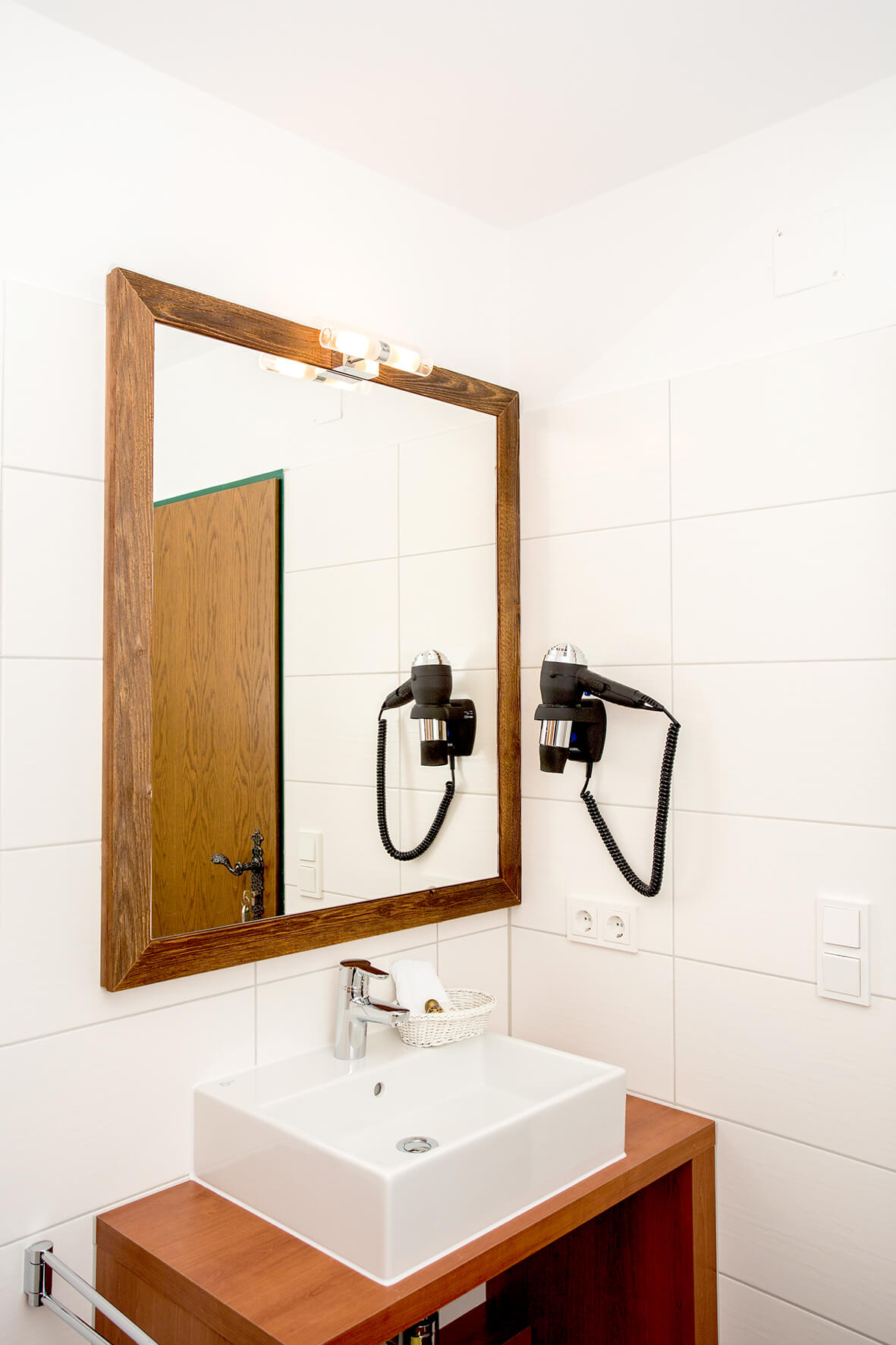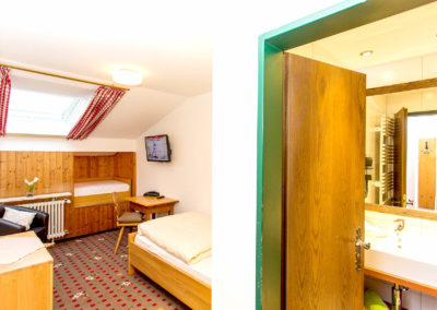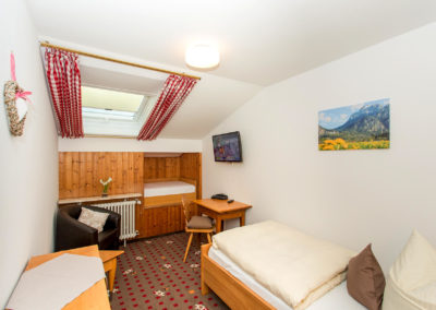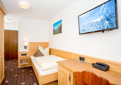 Einzelzimmer im Dachgeschoß, Wohnraumdachfenster, fl. Kalt-/Warmwasser, Etagendusche/WC, Sat-TV/Radio, Telefon und Safe.